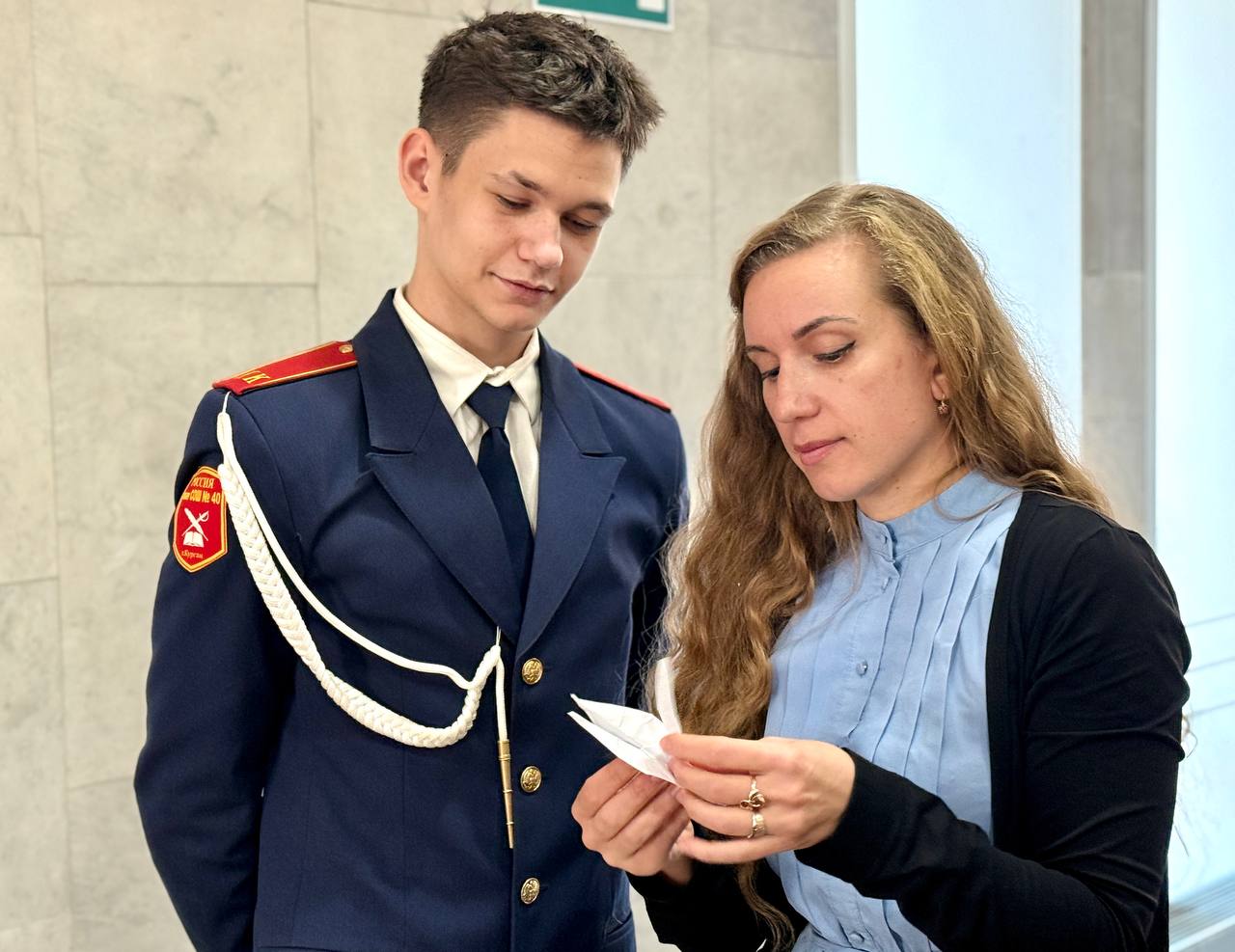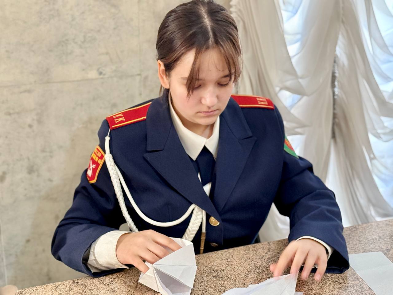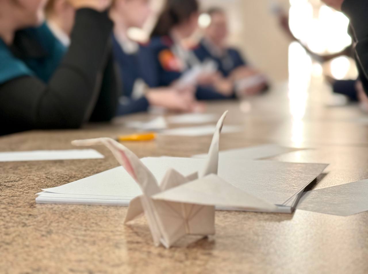 После экскурсии кадеты изготовили бумажных журавликов и послушали песню «Журавли» в исполнении Марка Бернеса. Ольга рассказала школьникам значение и традиции этой памятной даты, историю написания стихотворения, где метафора журавлей используется для передачи скорби по воинам, не вернувшимся с войны.