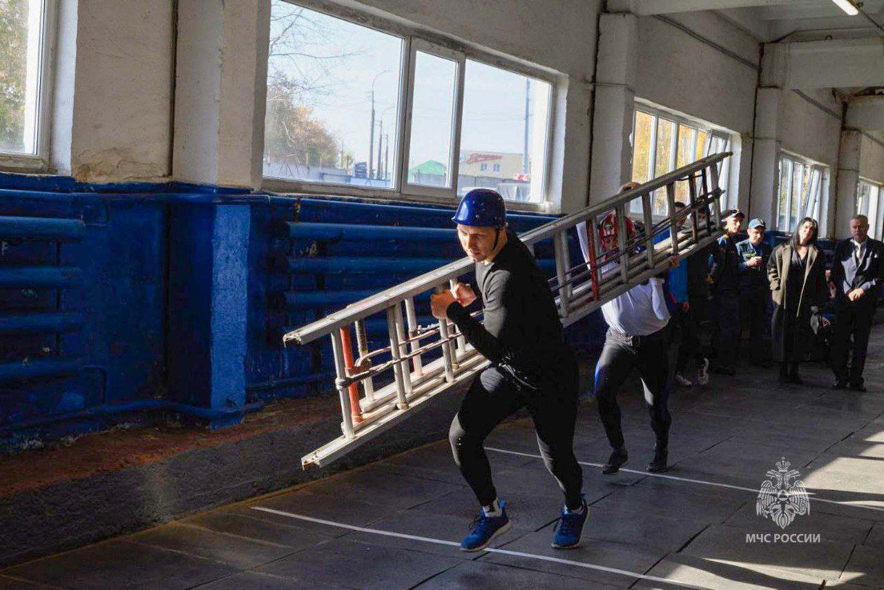 5 команд собрались проверить свою физическую силу, ловкость и скорость в подъеме по штурмовой и выдвижной лестнице в окно учебной башни.