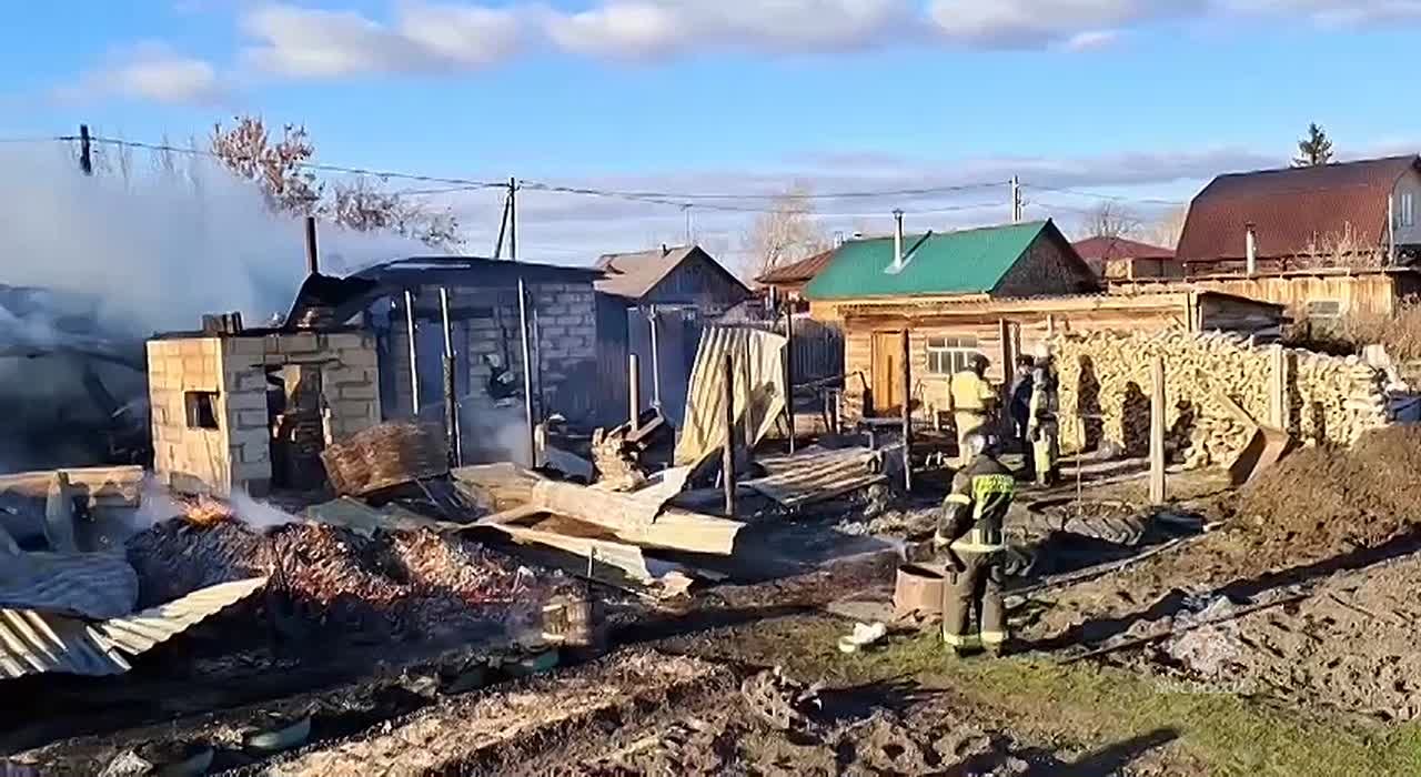 Предварительная причина пожара: неосторожное обращение с огнём. Хозяин дома пилил болгаркой металл. Искры от инструмента попали на бензин, который капал с рядом стоящего легкового автомобиля.