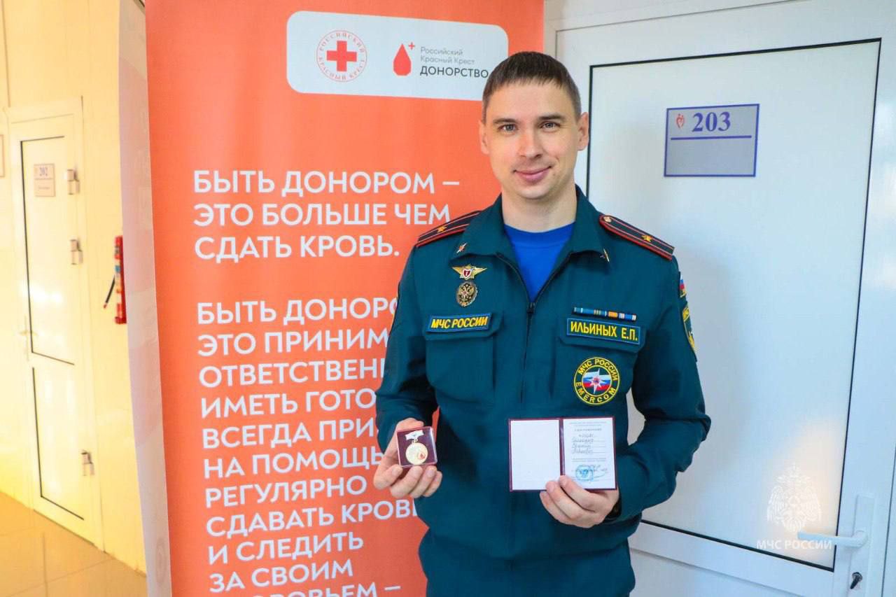 Специалист ведомства Евгений Ильиных, который сдал кровь уже в 40-й раз - получил звание «Почетный донор».