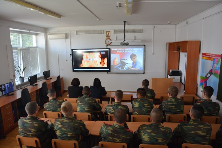 После просмотра перед аудиторией выступила инспектор по делам несовершеннолетних. Она разъяснила кадетам основные методы, которые используют вербовщики для манипуляции, и меры противодействия лицам, склоняющим к террористической деятельности.