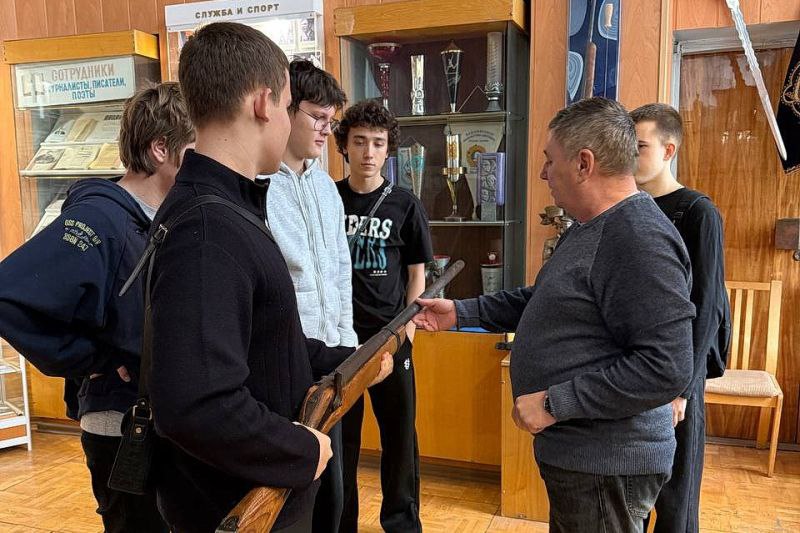 Представитель ветеранской организации полковник внутренней службы в отставке Игорь Синицын рассказал школьникам о становлении и развитии правоохранительных органов Зауралья. Ребята увидели исторические фотографии, документы, форменное обмундирование и служебное оружие разных лет. Особое внимание Игорь Викторович уделил героям и ветеранам, сотрудникам, погибшим при исполнении служебного долга и воевавшим в «горячих точках».