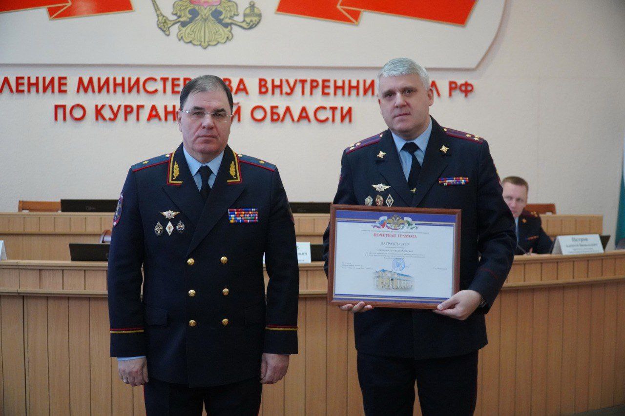 За образцовое исполнение служебных обязанностей и достигнутые успехи в работе начальник УМВД России по Курганской области генерал-майор полиции Сергей Воложинов вручил коллегам медаль МВД России «За доблесть в службе», Почетные грамоты МВД России, Благодарности Министра внутренних дел Российской Федерации, нагрудные знаки МВД России «За отличную службу в МВД» I степени, Почетные грамоты УМВД России по Курганской области.