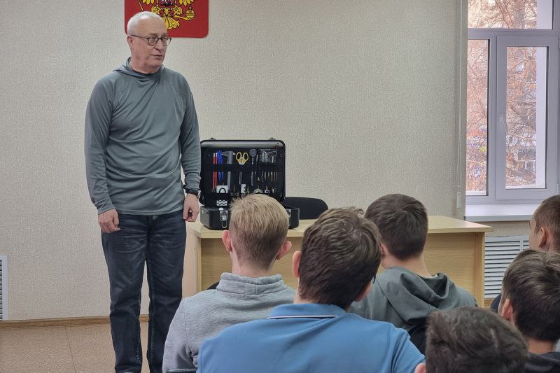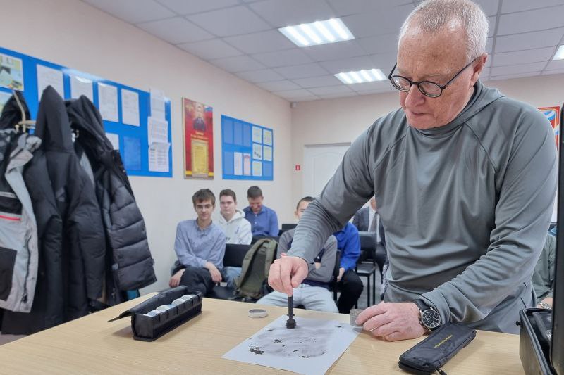 Эксперт Андрей Соколов ознакомил ребят с возможностями экспертно-криминалистической службы, методами работы, необходимыми для раскрытия и расследования преступлений. Андрей Алексеевич рассказал, как осуществляется обнаружение, фиксация и изъятие следов, вещественных доказательств по различным видам преступлений, а также ознакомил студентов с содержимым унифицированного следственного чемодана «Криминалист».