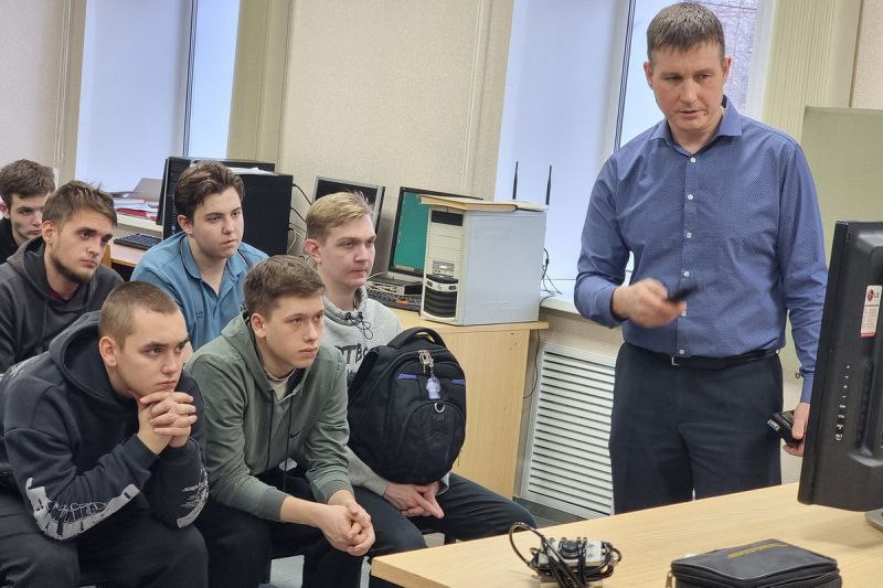 В ходе встречи с молодыми людьми начальник отдела автотехнических и пожарно-технических экспертиз подполковник полиции Алексей Михайлов рассказал им об особенностях работы отдела, разъяснил квалификационные требования, предъявляемые к современным экспертам-автотехникам.