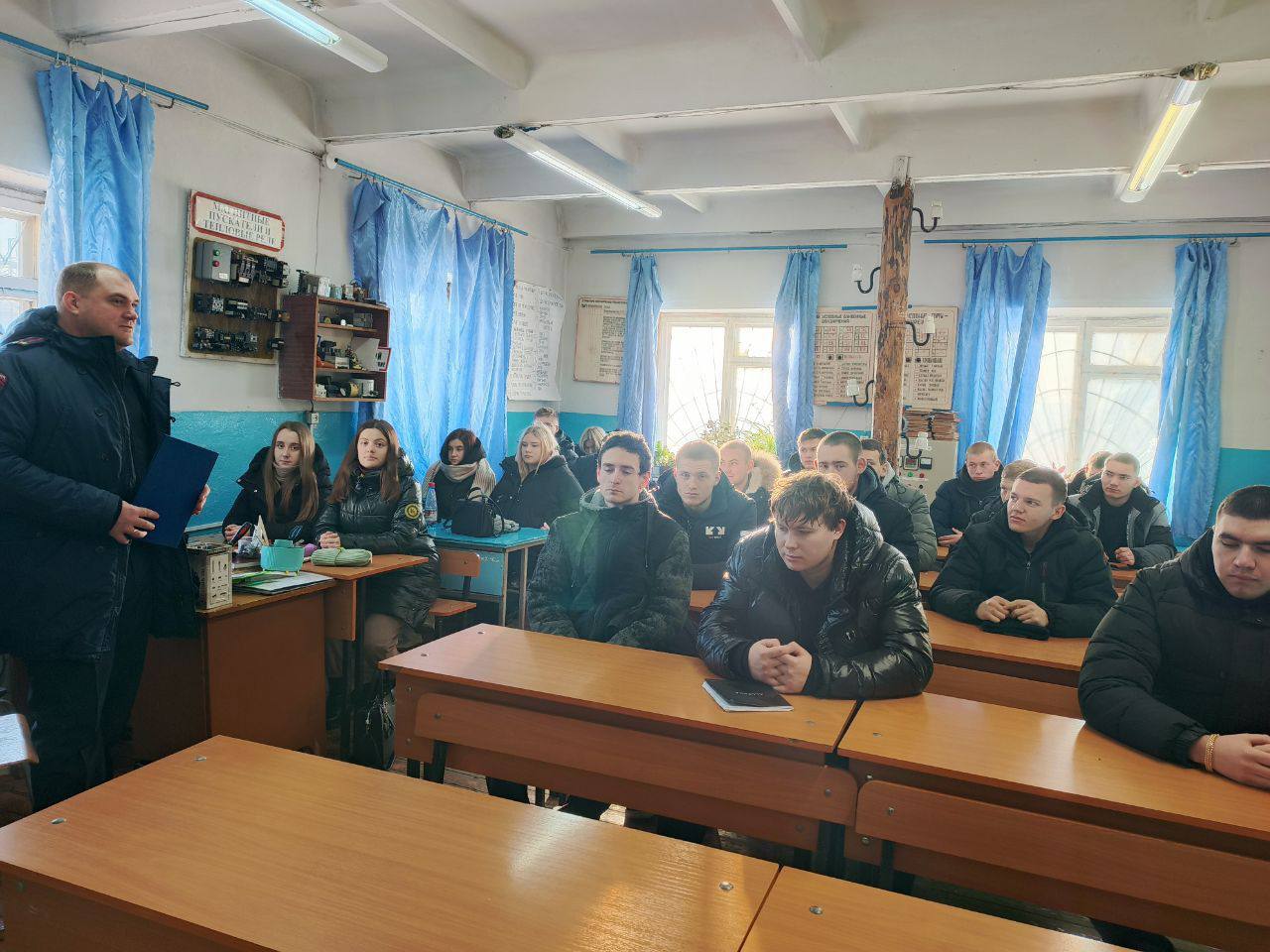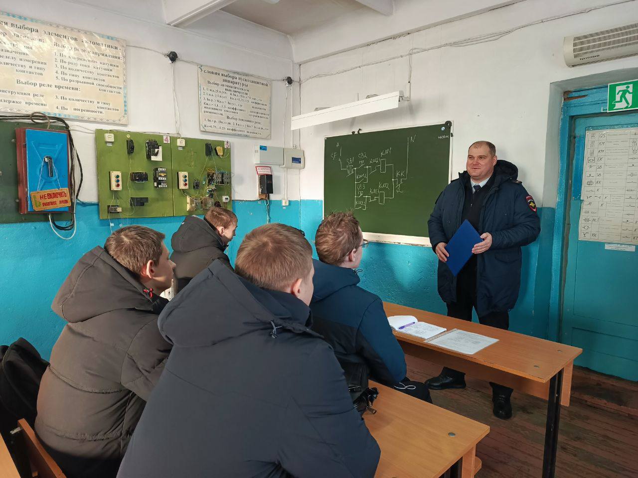 Заместитель начальника межмуниципального отдела МВД России «Петуховский» – руководитель группы по работе с личным составом подполковник полиции Михаил Сафронов совместно с председателем Общественного совета Оксаной Сниткиной провели профилактическую беседу со студентами Петуховского техникума механизации и электрификации сельского хозяйства.