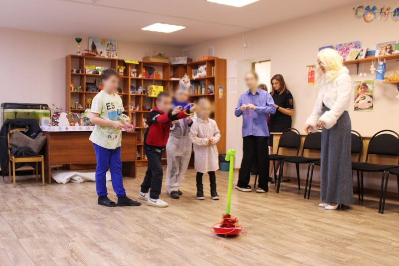 Полицейские организовали конкурсы и викторины, чтобы создать у ребят праздничное настроение. Начальник Центра подполковник полиции Вера Реутова пожелала детям успехов в учебе, благополучия, не совершать противоправных деяний, а также вручила им новогодние сладкие подарки.
