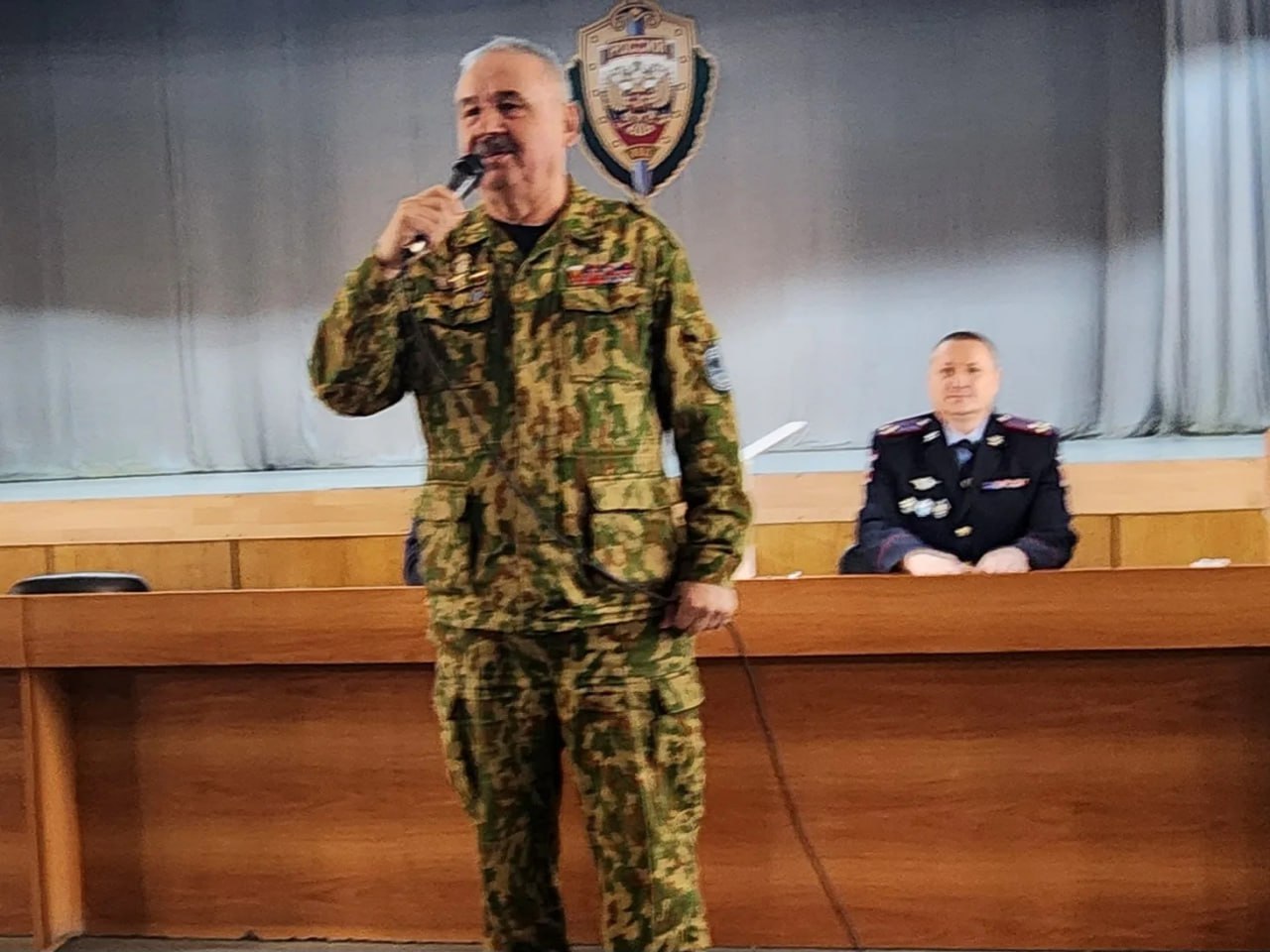 Открывая собрание заместитель начальника УМВД России по г. Кургану полковник полиции Соколов Игорь отметил, что наша великая Родина всегда стояла на защите интересов народов, нуждающихся в помощи. Привел факты как Российские солдаты и офицеры в разные исторические времена героически отстаивали независимость, свободу и самобытность Родины. Великая Отечественная война, война в Афганистане, Чечне, а затем и в последующих горячих точках затронуло судьбы сотен тысяч людей. Наш долг – чтить тех, кому удалось выжить, вернуться и показать пример бесстрашия, величайшей силы духа и боевого мастерства.