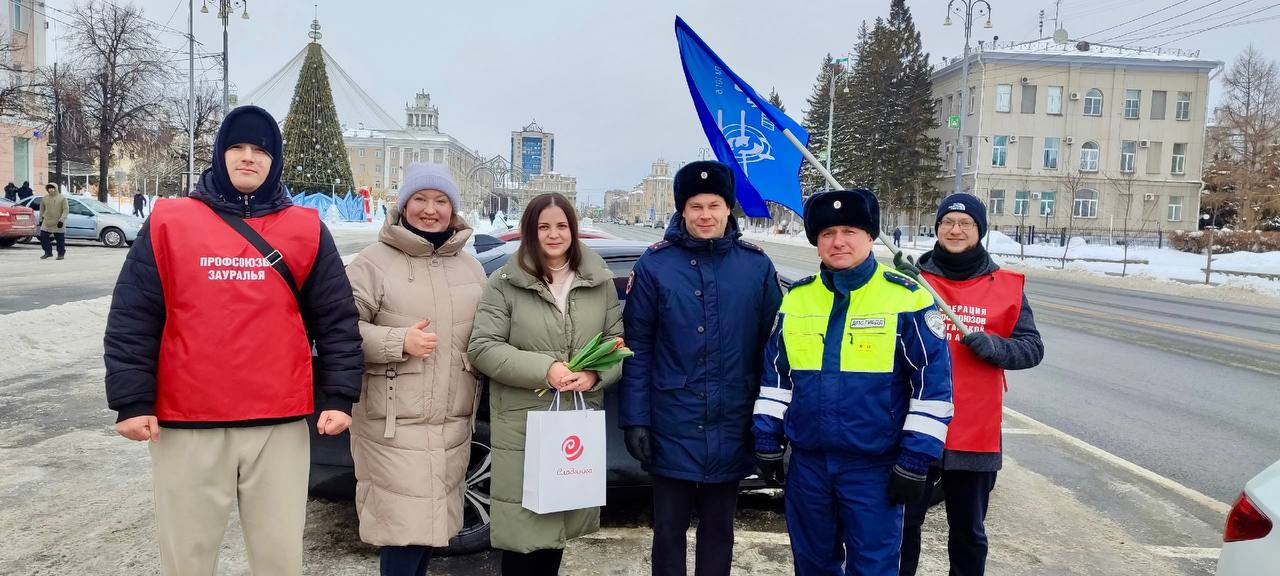 Восьмого марта в Кургане дежурили "цветочные патрули". Вместо стандартной проверки документов женщин за рулем ждал приятный сюрприз. Инспекторы ДПС в разных районах города останавливали автоледи, только для того, чтобы вручить цветы и подарки.