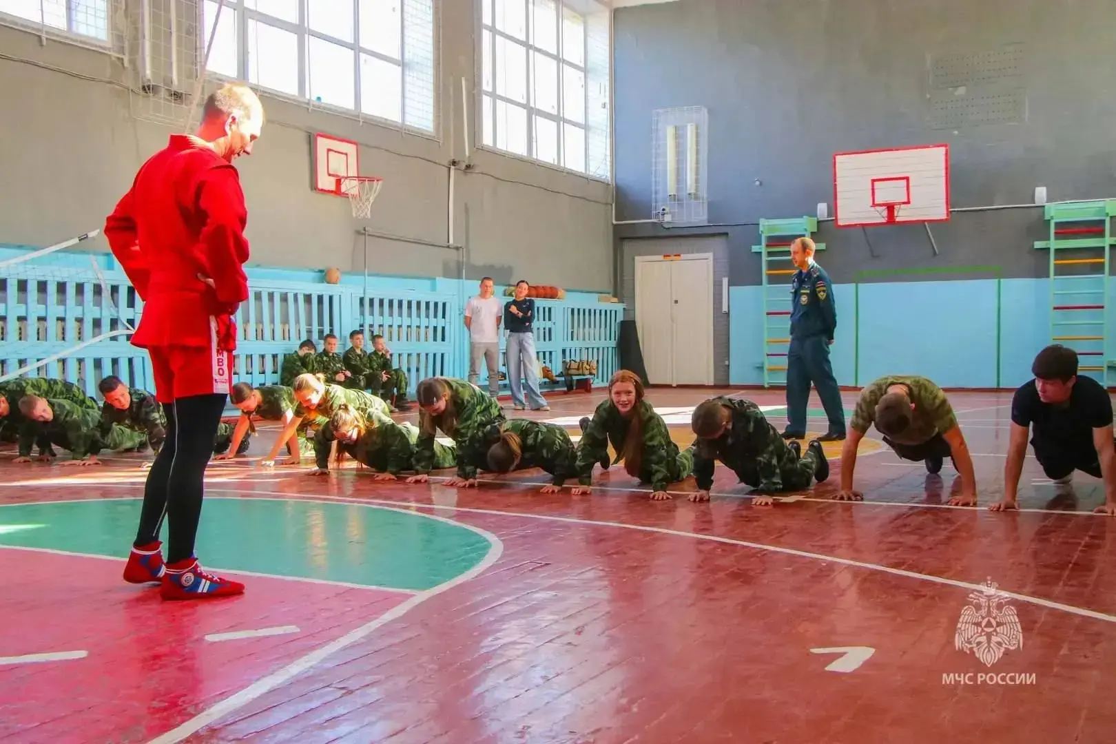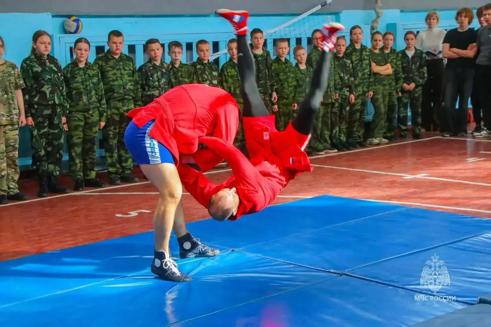 Мастера спорта, сотрудники Главного управления МЧС России по Курганской области – Сергей Лозовский, Артем Губанов и Антон Кутиков – продемонстрировали кадетам основные приемы самбо, включая броски и захваты. Ребята не только наблюдали за мастер-классом, но и сами смогли попрактиковаться под руководством опытных инструкторов. Завершилась тренировка соревнованием по отжиманиям с призами.