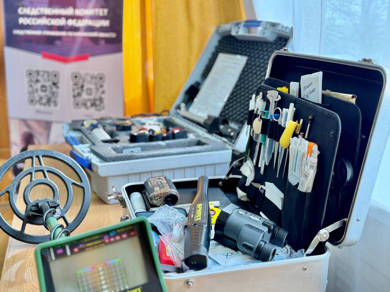 После официальной части мероприятия ребята смогли ближе познакомиться с профессией следователя. Школьники посмотрели видеоролик о работе курганских следователей и пообщались со следователем–криминалистом следственного управления Дмитрием Делягиным, который рассказал о том, как современная криминилистическая техника помогает раскрывать преступления.