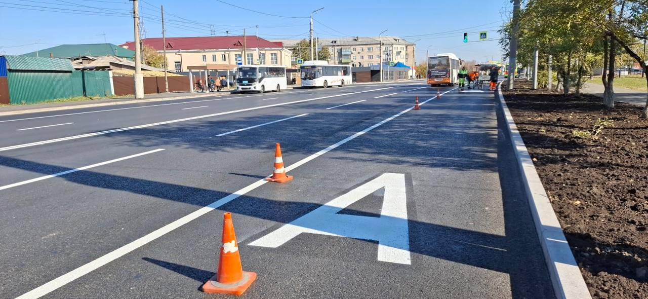 На данном участке теперь выделена отдельная полоса для маршрутно-пассажирского транспорта от путепровода до улицы Крупской. Кроме того, расширено количество полос для движения транспорта в направлении от улицы Пугачева до улицы Крупская, вместо одной полосы здесь теперь организовано две.