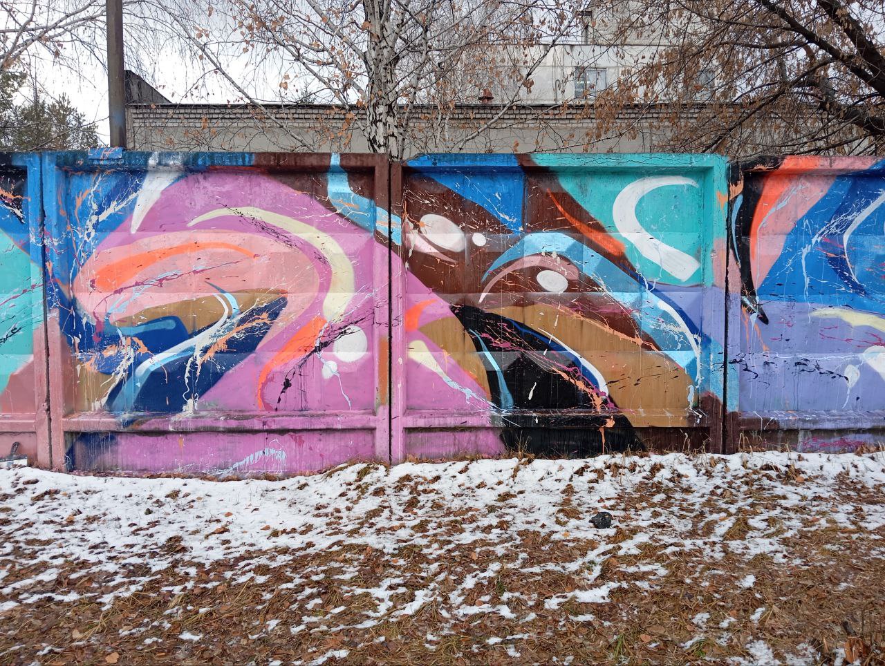 Курганский художник выразил свои эмоции на заборе у школы № 17.