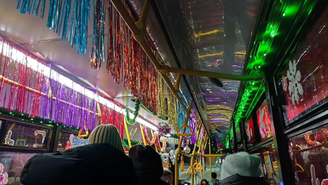 Вот такой автобус курсирует по улицам Кургана и поднимает новогоднее настроение пассажирам
