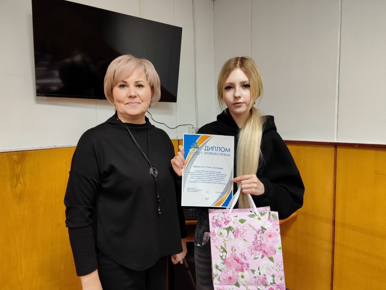 В Шатровском муниципальном округе председатель ТИК округа Татьяна Байкалова вручила диплом и приз Екатерине Сипиной, занявшей первое место в номинации «Что для меня выборы?» регионального творческого конкурса среди молодых и будущих избирателей «Мой выбор – шаг в будущее!».