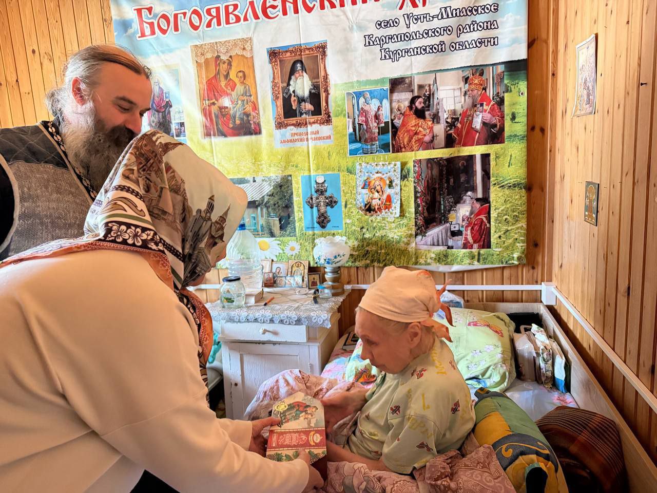 По традиции поздравили с Рождеством проживающих при храме Богоявления Господня в селе Усть-Миасском пожилых земляков и настоятеля храма отца Александра, чьими заботами согреты не только постояльцы богадельни, но и десятки прихожан, а также ребятишки-воспитанники воскресной местной школы. При поддержке Правительства при храме действует швейная мастерская и небольшая ферма, а недавно купили оборудование для производства продуктов.