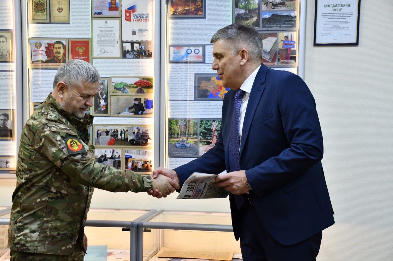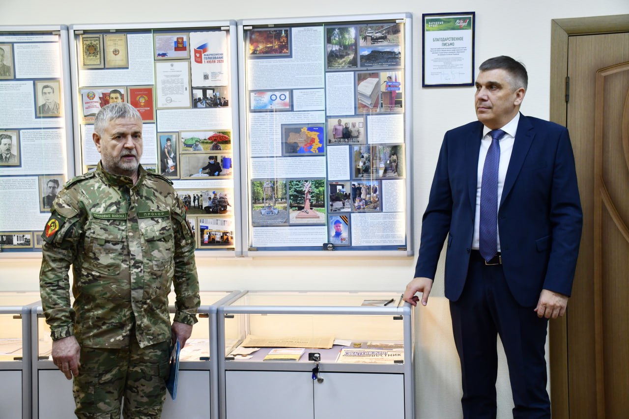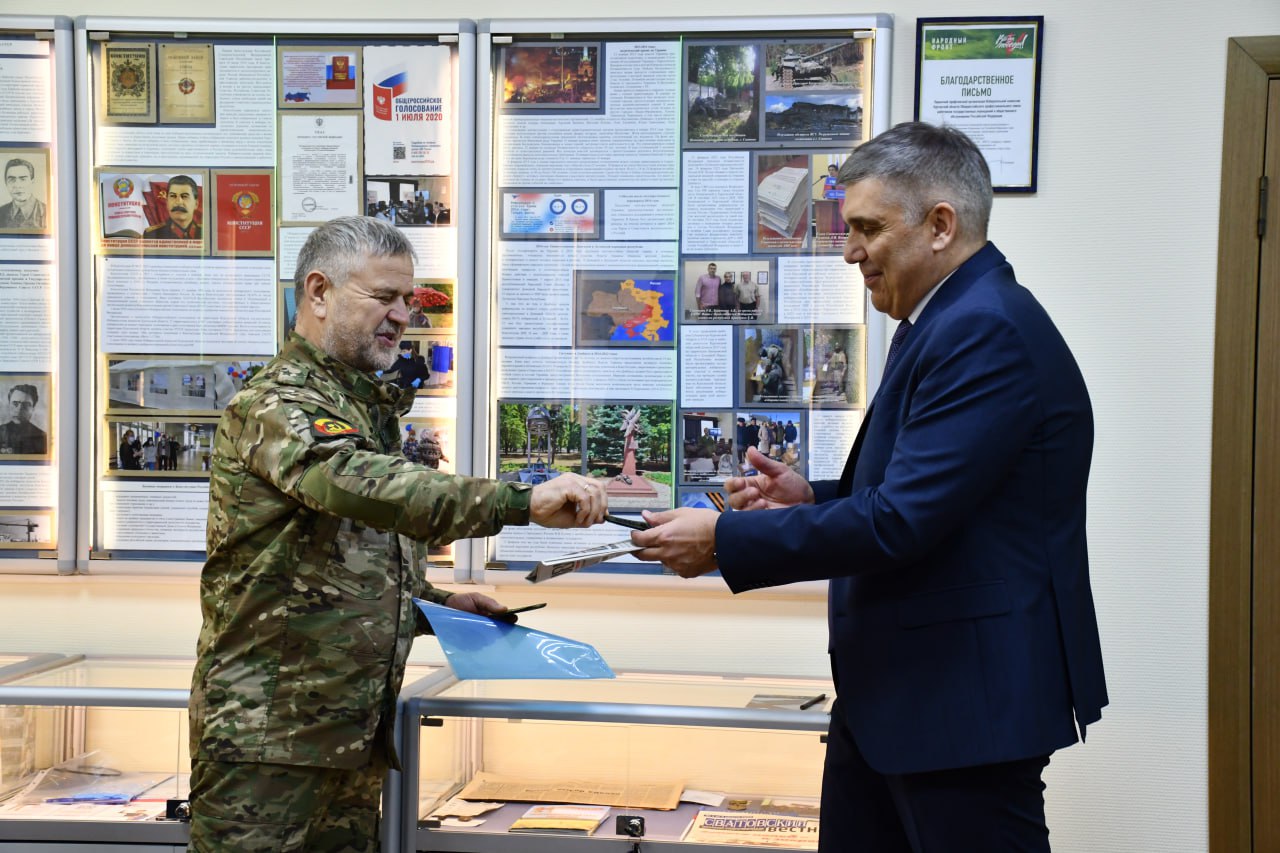Музейная экспозиция История выборов в Зауралье, рассказывающая о становлении и развития избирательного процесса, начиная с эпохи Екатерины II, 1766 года, пополнилась новыми материалами. Сегодня, 29 января, в Избирательной комиссии Курганской области состоялось открытие нового стенда в составе выставочной галереи, посвященного теме специальной военной операции. Почетный гость церемонии военнослужащий из танкового батальона, участник СВО с позывным Прохор. Ознакомиться с новыми экспозиционными материалами смогли члены Избирательной комиссии Курганской области и сотрудники аппарата облизбиркома.