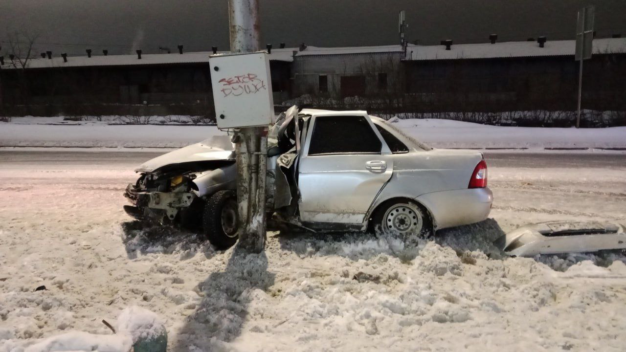 Лада Приора ехала в сторону Чеховского моста, не справилась с управлением и врезалась в электроопору. Травмы получили водитель и пассажир, рассказали в госавтоинспекции.