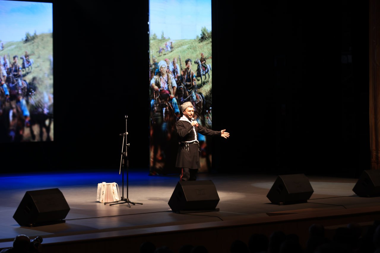 Кульминацией стал праздничный концерт. Звучали казачьи и народные мелодии, а также великие песни о России. Мастерство курганских коллективов дополнили гости: заслуженный артист России Виктор Сорокин и солист Краснодарской филармонии Иван Лубягин.