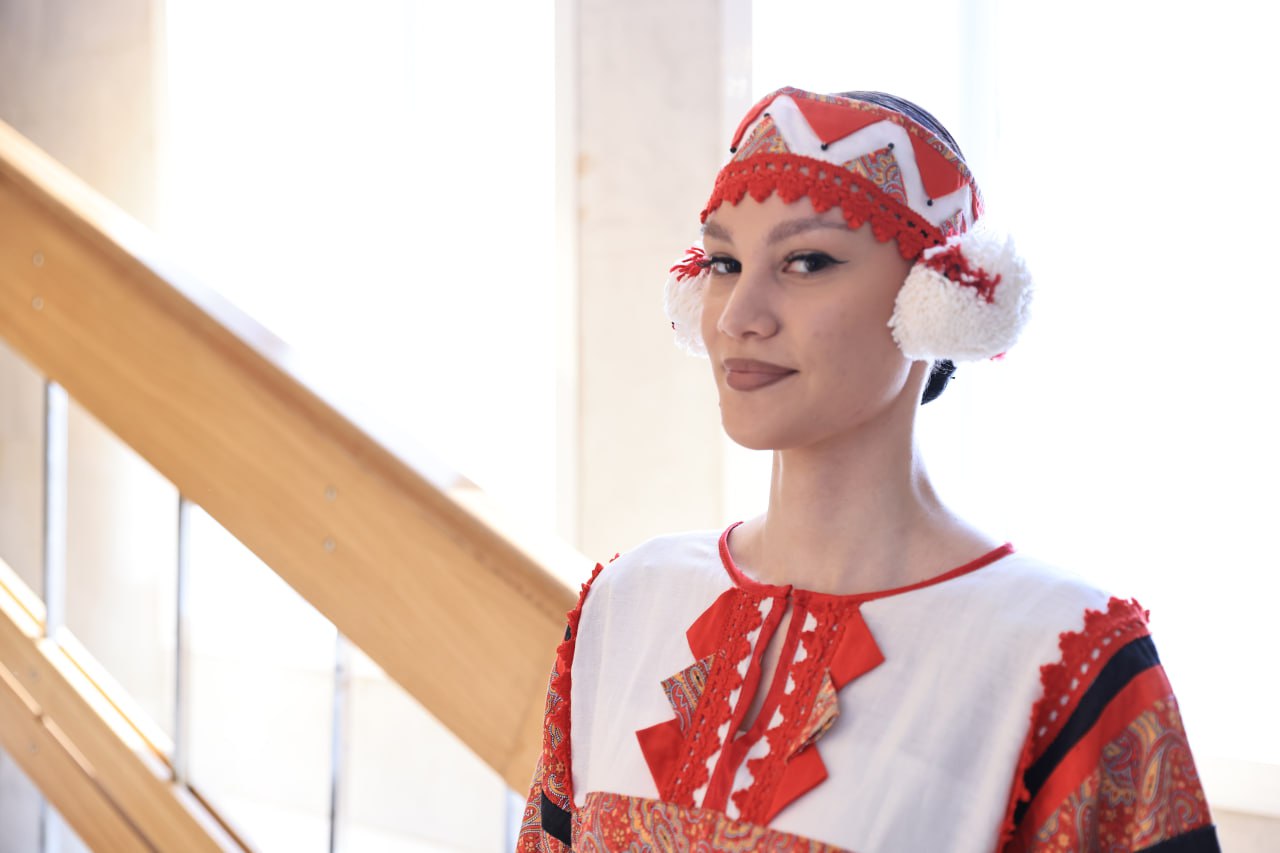 Праздник начался уже в фойе: гостей встречали студенты в ярких народных стилизованных костюмах, приглашая в путешествие по культурному многообразию региона. В фойе были представлены народные ремесла: мастера знакомили с урало-сибирской росписью, гости создавали изящные броши с татарским орнаментом, пробовали себя в ковроткачестве. Каждый желающий мог познакомиться с выставкой народных инструментов и национальных костюмов.
