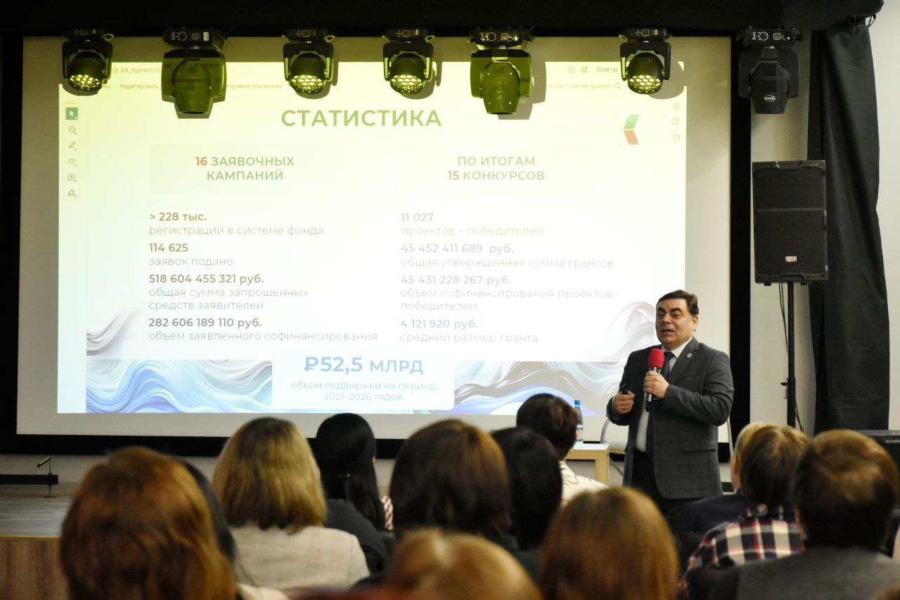 За время работы Фонда было поддержано 56 проектов организаций Курганской области на общую сумму около 135,6 млн рублей. Объем софинансирования этих проектов составил порядка 140,4 млн рублей. Среди реализованных инициатив такие проекты, как дважды поддержанный Фондом Международный музыкальный фестиваль От Востока до Запада, создание комплекса этнографической реконструкции Музей зауральской деревни под открытым небом, экспозиционно-просветительский проект Как по маслу!, спектакль юных артистов о героях СВО Наши: во имя жизни, медиапроект #давайпосмотрим.