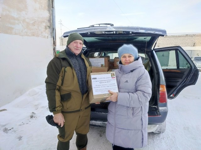 Гуманитарную помощь для доставки в районы проведения СВО члены ТИК передали ветерану пограничных войск Михаилу Урупову.