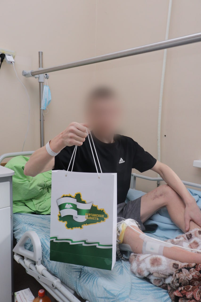 "В преддверии 23 февраля в Центре Илизарова повстречались с нашими парнями, находящимися там на восстановлении.Курганец Сергей был мобилизован, на Запорожском направлении после прилёта дрона-камикадзе получил тяжёлое ранение руки.