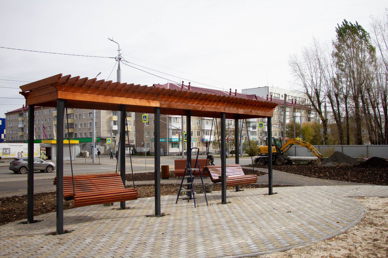 Пространство по ул.Карбышева, 31, которое раньше пустовало, сейчас привели в порядок. Подрядчик, ООО «Стройкомплекс», обустроил площадку. Сначала была выполнена планировка, затем вырублена поросль. Часть тротуарных дрожек выполнены в асфальте, а часть - в плитке. Здесь установили бортовые камни, восстановили газон. Уже другим подрядчиком – ООО «Унитрон» - была произведена установка малых архитектурных форм. В их числе пергола с двумя качелями, скамейки и урны. Сейчас работы находятся в завершающей стадии.