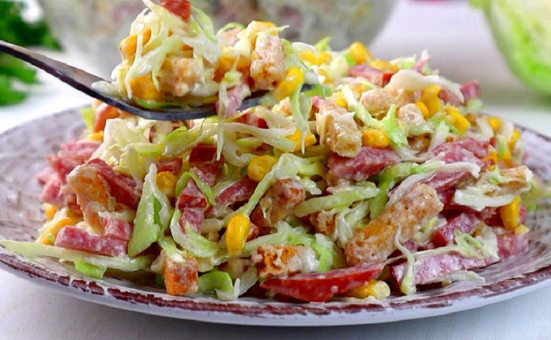 В современном мире, где каждую минуту на счету, многие хозяйки ищут решения для быстрого и сытного ужина. Салат «Моя леди» идеально подходит к этому запросу. Пекинская капуста, копченая колбаса, консервированная кукуруза и хрустящие сырные сухарики создают чудесное сочетание, которое удивит даже самых взыскательных гурманов. Простые компоненты, при правильном комбинировании, превращают салат в полноценное и яркое блюдо.
