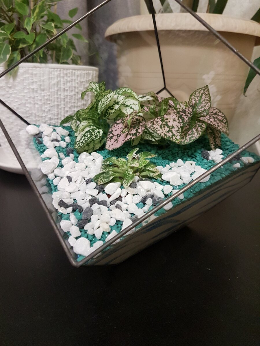 Восприятие флорариумов разнообразно, и выбор растений для них часто зависит от предпочтений дизайнеров и их видения. Фиттонии привлекают своим ярким окрасом и необычными прожилками, что делает их идеальными кандидатами для такого проекта. Мини-фиалка была выбрана по той причине, что она легко вписывается в концепцию, так как происходит из маленького горшка, который аккуратно был интегрирован в общий дизайн.