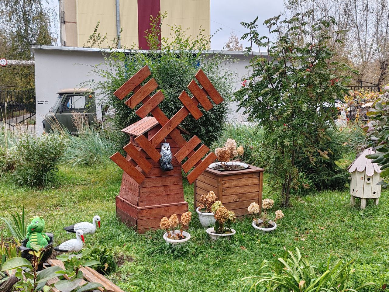 Удивил конкурсную комиссию ТОС «Радужный поселок» и их «Королева Осени». Кукла располагается на территории детской площадки микрорайона Радужный, имеет оригинальную трёхъярусную юбку, изготовленную из кругов фанеры и декорированную тыквой, яблоками, кабачками, арбузом и др. На веранде жители подготовили осеннюю фотозону, её декор выполнен из сена, тыкв и других природных материалов. Также жители ТОС «Радужный поселок» на территории детской площадки обустроили декоративный водоем, установили мостик с черепашкой, а для отдыха приобрели два кресла-кокона на подставке.