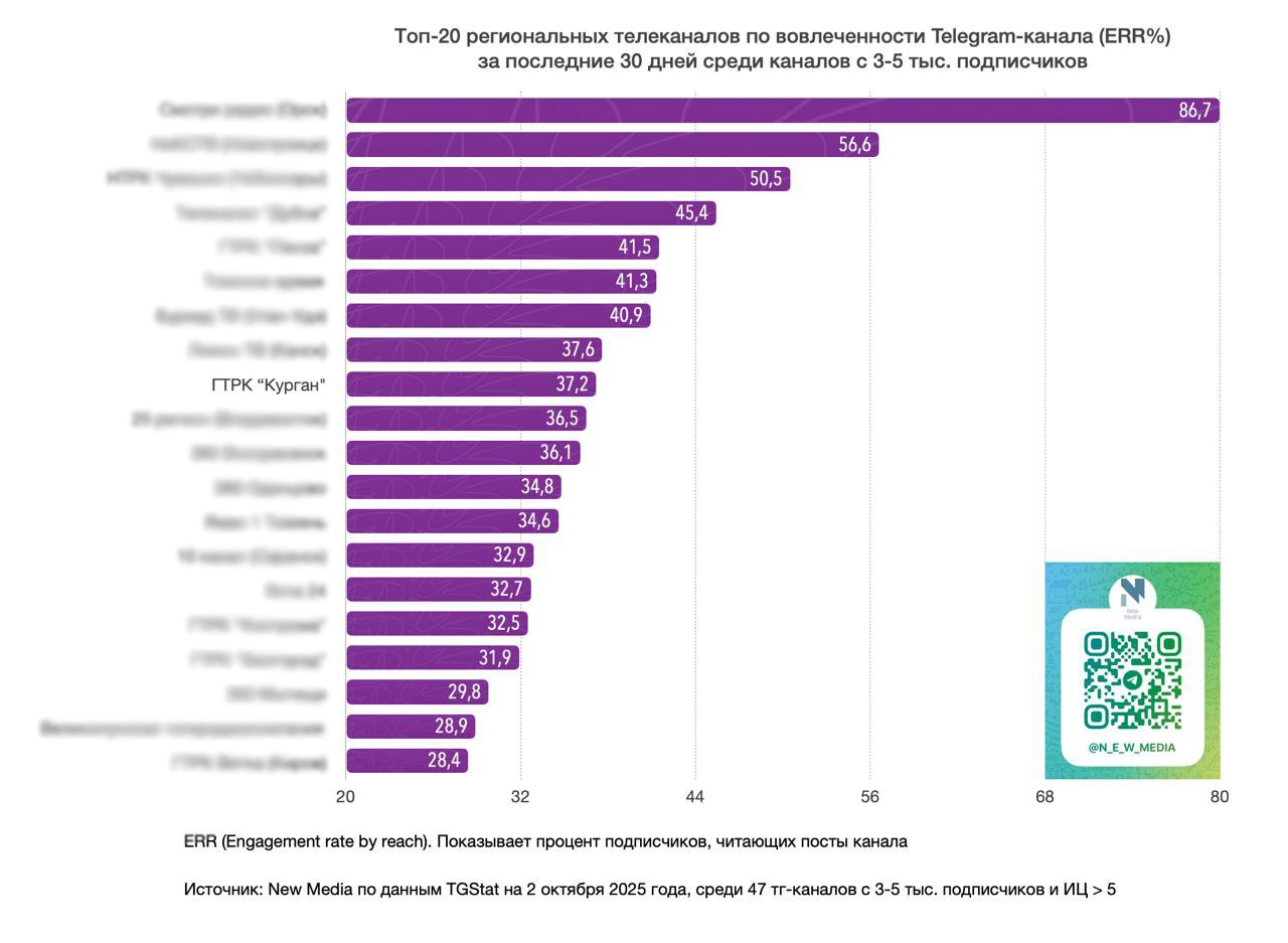Мы вошли в рейтинг New Media среди региональных телеканалов по трём метрикам: месячной вовлеченности подписчиков, суммарному и среднему охвату публикации.