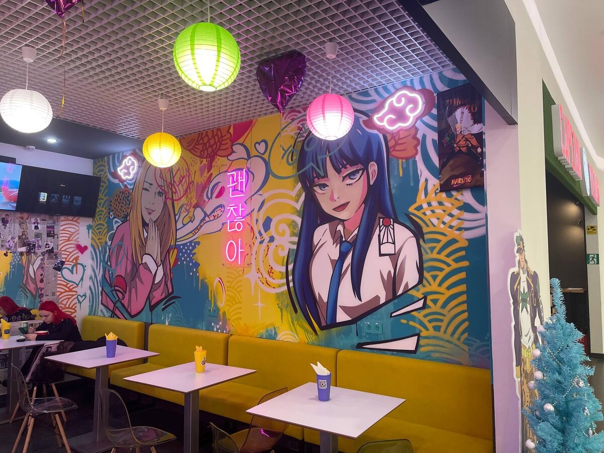 «Fandom» поражает своим интерьером в стиле лофт, украшенным яркими неоновыми вывесками и изображениями популярных аниме и к-поп айдолов. Это создает неповторимую атмосферу, идеально подходящую для молодежи. Обслуживание в кафе тоже на высоте: персонал готов помочь с выбором и ответит на все вопросы.