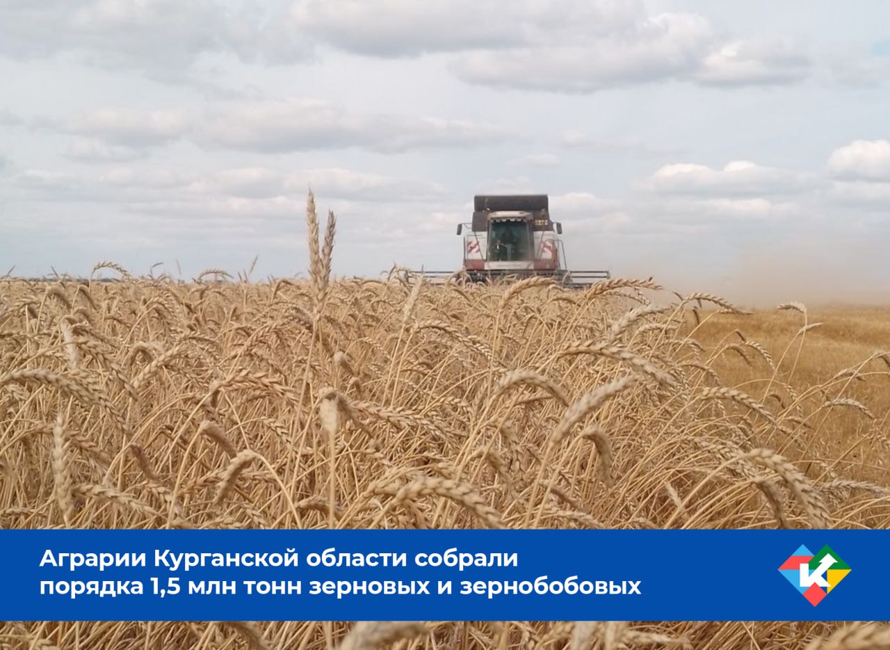 Аграрии Курганской области собрали порядка 1,5 млн тонн зерновых и зернобобовых. Уборочная кампания продолжается. Об этом губернатор Вадим Шумков рассказал в своих социальных сетях и мессенджере MAX https://max.ru/v_shumkov/AZmp7fp2AsE