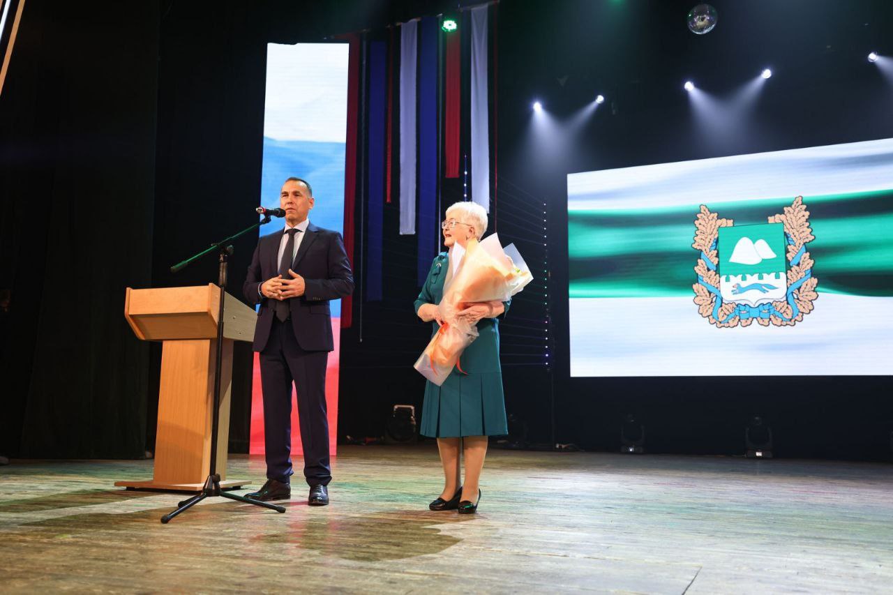 По традиции Вадим Шумков вручил цветы своей первой учительнице Нине Александровне Новосёловой.