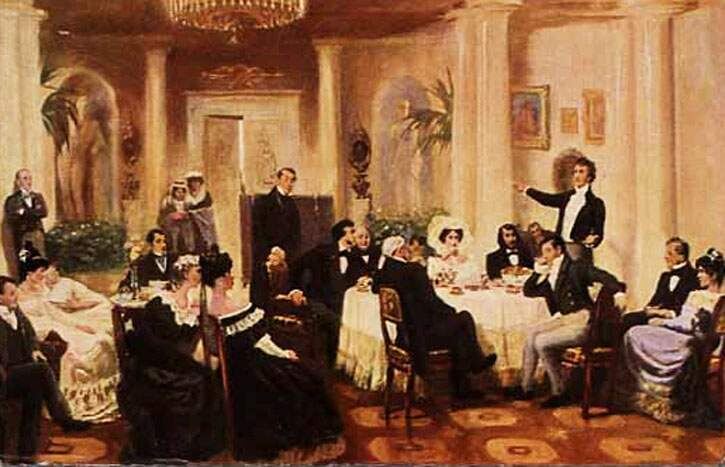 Первой на ужине обычно сидит дама, расположенная справа от хозяина, ей следует следовать в порядке очередности. Если число гостей превышает восемнадцать, рекомендуется использовать двойную порцию блюд, чтобы обеспечить максимально комфортное и эффективное обслуживание.