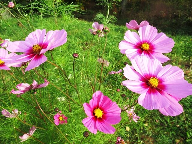 - Космея: Этот цветок продолжает удивлять своим обилием. Обрезка растений после цветения помогает добиться яркого цветения даже в начале октября.