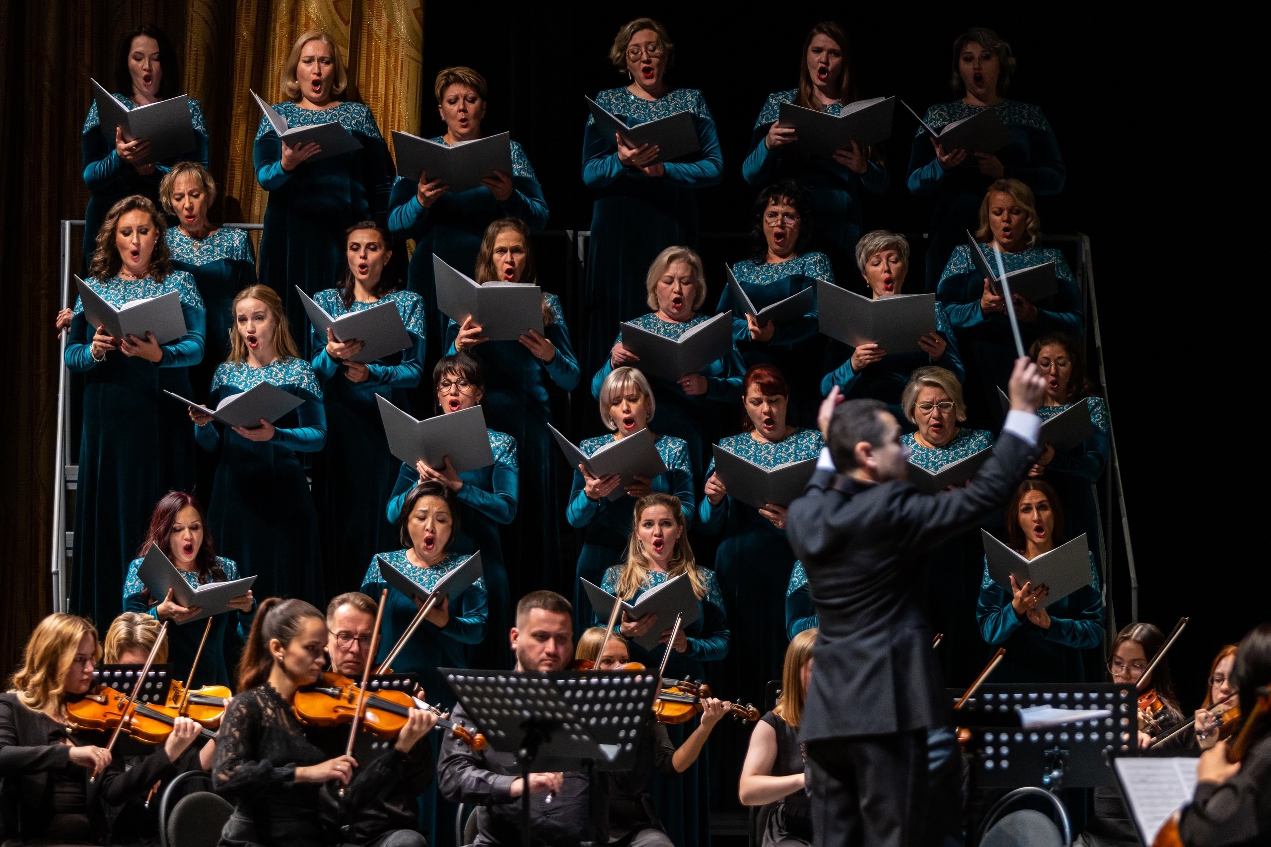 В Курганской филармонии открыли 82-й сезон. В программе - две премьеры, на сцене - звёзды из трёх городов. Московский виртуоз за роялем, хор из Магнитогорска и петербургский тенор. Как на сцене разместили сотню музыкантов и каким датам посвятили программу?