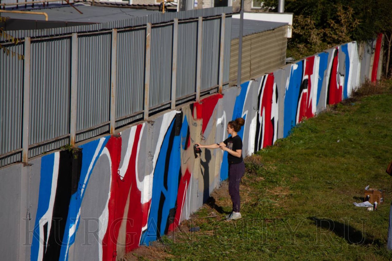 В Кургане продолжается фестиваль стрит-арта, который направлен на благоустройство и украшение городских территорий и объектов. В этом году особое внимание в рамках фестиваля будет уделено объектам социальной сферы. Первым объектом этого сезона стал забор стадиона ДЮСШ № 3 по ул.Невежина.