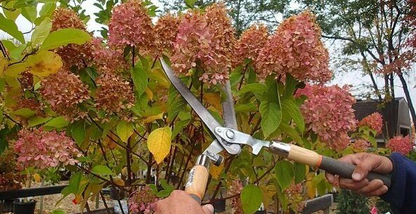 Метельчатая гортензия также цветет на побегах текущего года, поэтому осеннее обрезка для нее становится необходимой. Обычно эту процедуру проводят ежегодно, чтобы избежать превращения растения в непроходимую массу. Если целевой формой является штамб, лучше оставить обрезку на весну или лето, так как метельчатая гортензия более устойчива к данной процедуре.