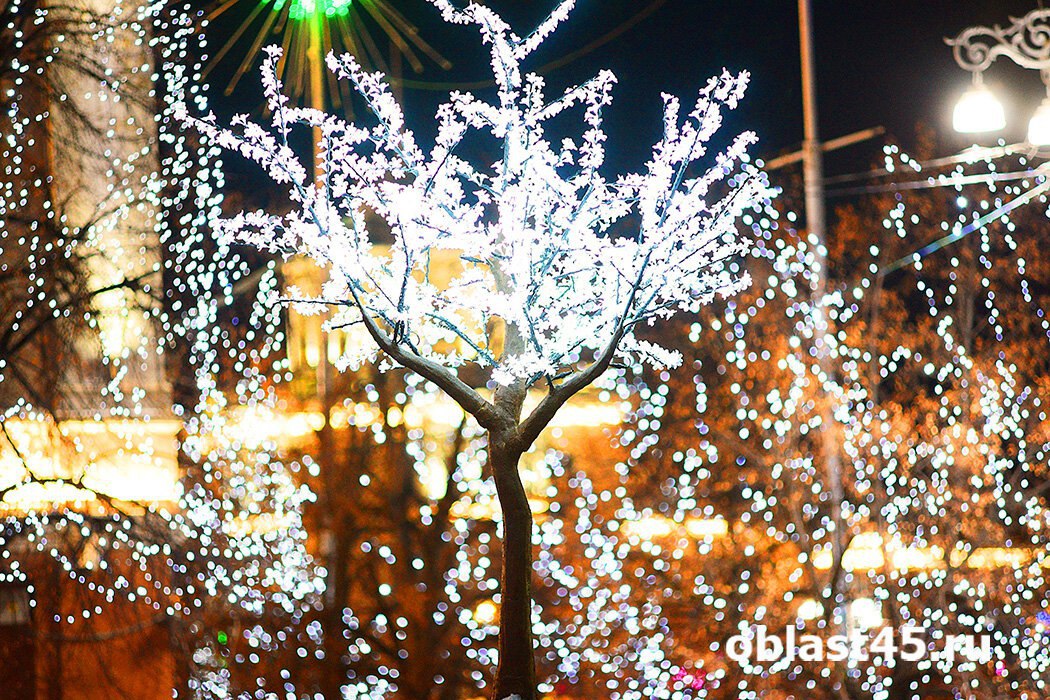 Курганцы заметили, что на центральной площади города начали включать гирлянды на деревьях.
