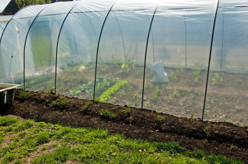 - Утяжелители: Заверните нижний край пленки с тяжелыми элементами вроде кусков трубы, чтобы в дальнейшем закрепить их в земле.