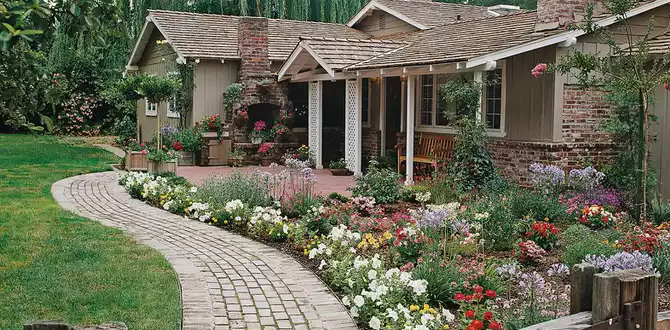 Нельзя недооценивать значимость входной зоны — это своего рода «визитка» вашего участка. Для начала стоит выделить дорожку к дому, обрамив её стильным бордюром. Сторонники симметрии могут использовать вечнозеленые кустарники и низкорослые растения — всё это добавляет выразительности и делает вход более привлекательным.