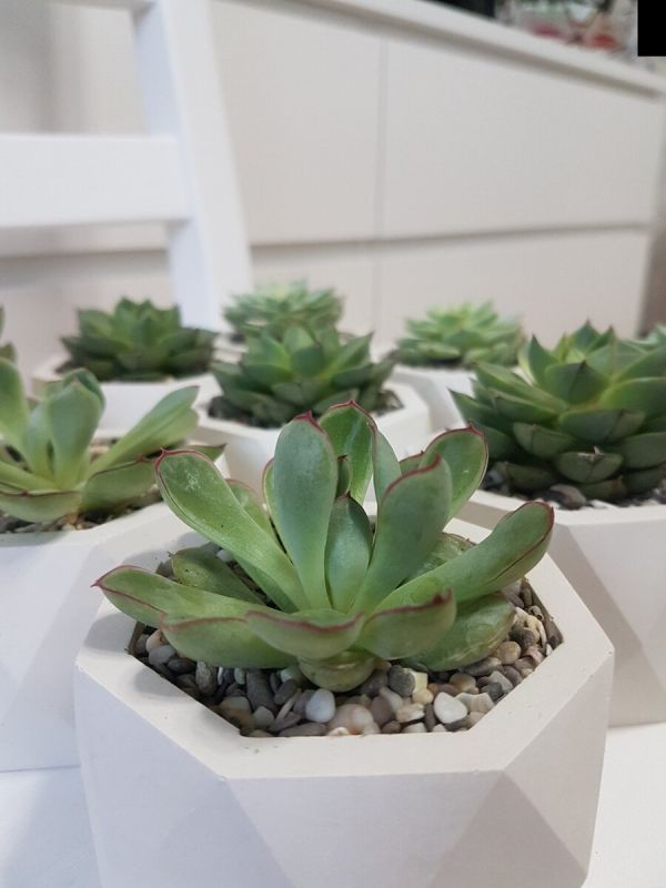 На финишной прямой, когда все было готово, возникла новая угроза – на одном из растений обнаружился паутинный клещ. В этой критической ситуации не осталось другого выбора: заболевшую эйхеверию обработали специальным средством и отделили от других растений. Оставшиеся были высажены в кашпо, и пара с надеждой отправилась в ресторан с заказом.