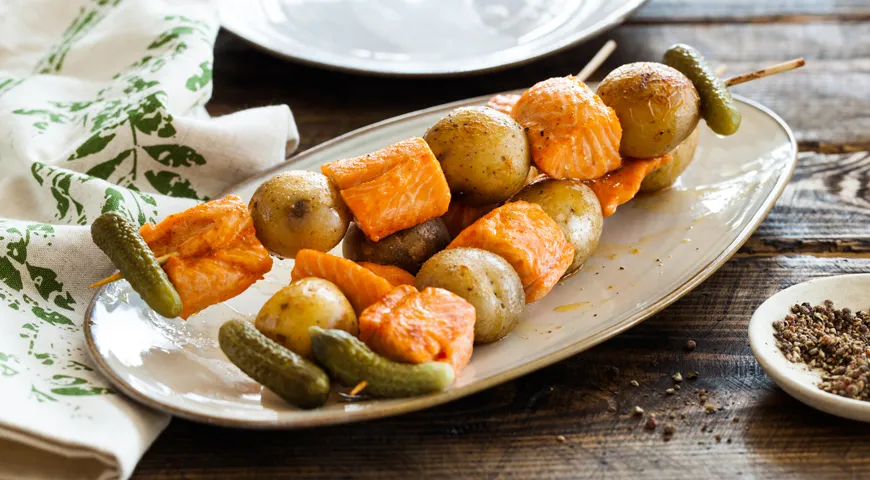 Шашлычки из семги с картошкой и маринованными огурцами представляют собой восхитительный вариант для любителей рыбы и изысканных угощений. Это блюдо легко готовится, а его гармоничное сочетание ингредиентов подарит всеобъемлющее гастрономическое удовольствие, удивляя как мясоедов, так и поклонников морепродуктов.
