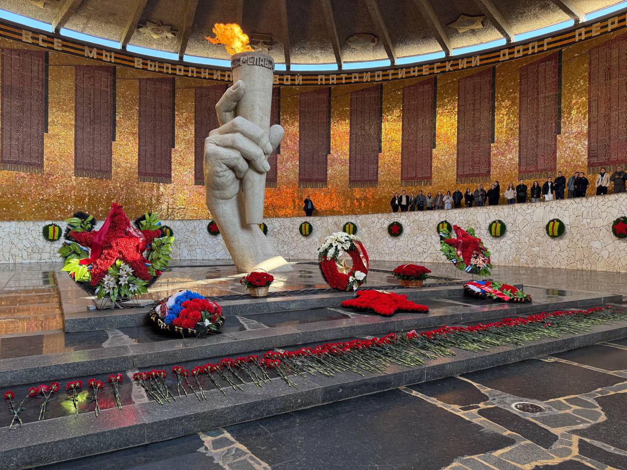 Также в ходе посещения города-героя Волгоград работники Росгранстроя возложили цветы к Вечному огню в Зале Воинской Славы на Мамаевом кургане, почтив героизм и мужество защитников нашей Родины во времена Великой Отечественной Войны