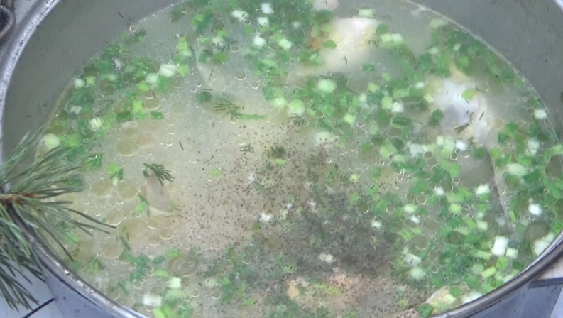 Когда овощи готовы, пришла пора добавить лосося, который также предварительно нарезан. Варите до получения желаемой текстуры рыбы, затем добавьте нарезанную зелень и черный перец по вкусу. Огонь можно выключить, но дайте ухе настояться несколько минут. Теперь суп готов к подаче!