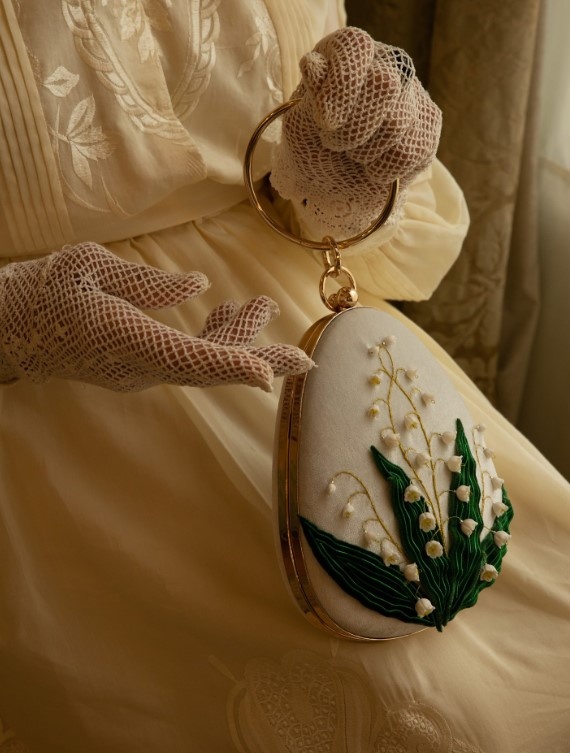 - Изысканный дизайн: жесткая рамка с застежкой и декоративные элементы, такие как вышивка или бисер, подчеркивают его изысканность.