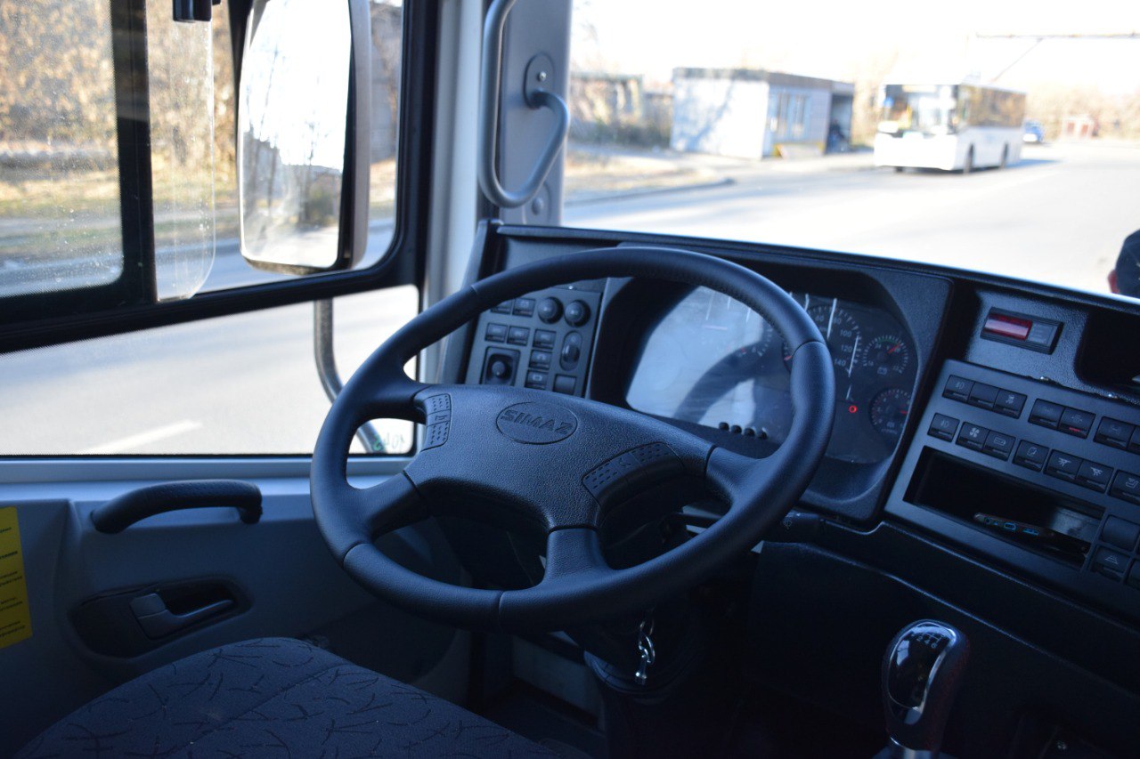 Добавим, Евгений Утков за рулём более 20-ти лет. Он уже познакомился со всеми удобствами нового транспорта, отмечает комфортный ход автобуса, лучшую подвеску, большую длину и ширину автобуса, дополнительное обустройство печек для обогрева. В СИМАЗе находится телевизор, на котором планируют размещать информацию для пассажиров. У водителя на панели приборов установлена видеокамера, которая помогает контролировать ситуацию в автобусе. Бегущая строка, расположенная на лицевой части и сбоку автобуса, показывает номер маршрута.