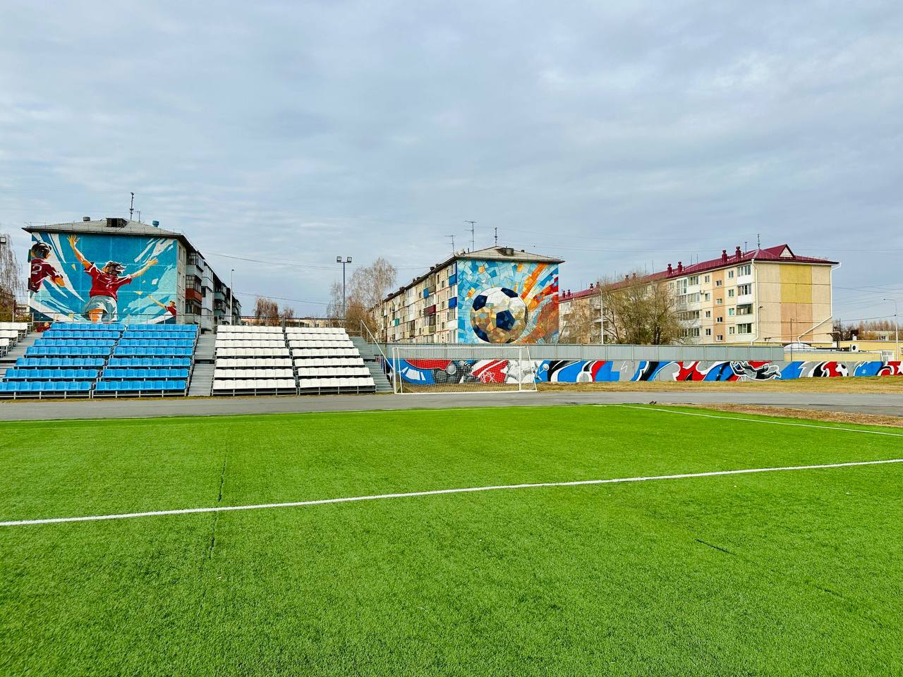 Первым объектом этого сезона, который преобразился стараниями молодых художников, стал забор стадиона ДЮСШ № 3 по ул. Невежина. Здесь появился мурал на футбольную тему.